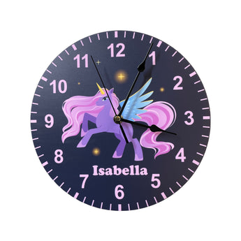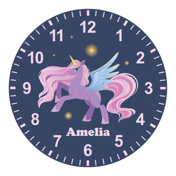 Dark Blue Unicorn Kids Silent Clock - Bespoke Personalised Special Gift