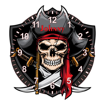 Pirate Shaped Kids Silent Clock - Bespoke Personalised Special Gift