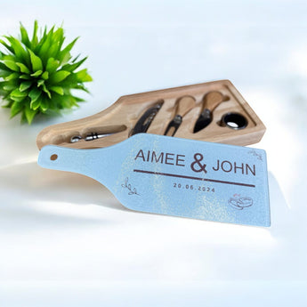 Personalised Glass Chopping Board, Cheese and Wine Set β’ 35Γ14 cm β’ Wedding / Anniversary Gift ππ