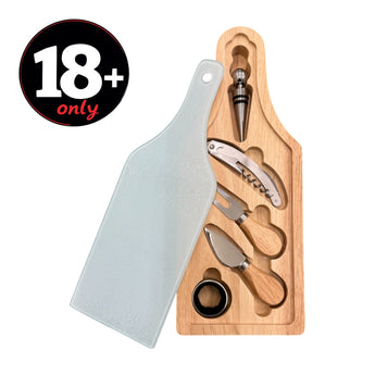 Cheese and Wine Wedding Gift Set with Glass Chopping Board 35x14cm