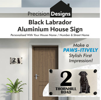 Dog Collection - Black Labrador Aluminium House Sign - Personalised