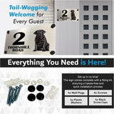 Showcase your love for your furry friend with this elegant Dog Collection - Black Labrador aluminium house sign. Crafted with a brushed silver aluminium and pre-drilled with screw holes, this sign will stand the test of time. You can easily customise it with your house name or number and street name. Perfect for indoor and outdoor use, this sign comes with all the fixings. Get yours now!