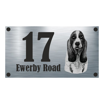 Dog Collection - Basset Hound Aluminium House Sign - Personalised