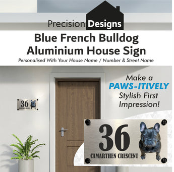 Dog Collection - Blue French Bulldog Aluminium House Sign - Personalised