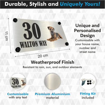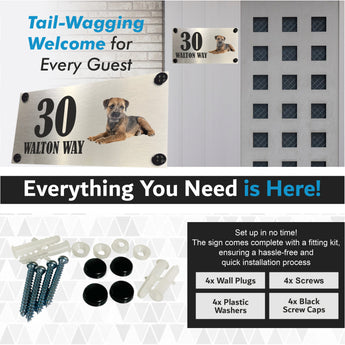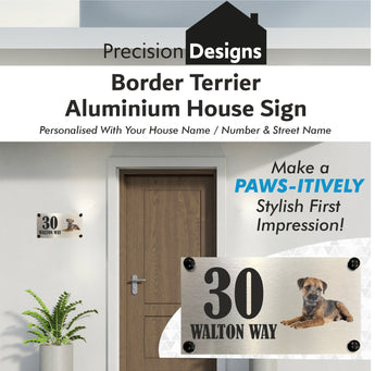 Greet visitors in style with this beautiful Dog Collection - Border Terrier Aluminium House Sign. Brushed silver aluminium adds a sophisticated look, while pre-drilled holes and included fixings make installation simple. Perfect for indoor or outdoor display to showcase your house name or number. Add a personal touch with ease!