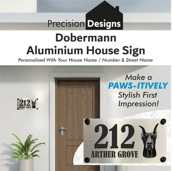 Dog Collection - Dobermann Aluminium House Sign - Personalised