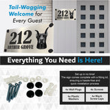 Welcome visitors to your home with style and elegance! Our Dog Collection - Dobermann Aluminium House Sign is sure to make an impact. Made from brushed silver aluminium, it stands 11 cm tall and 20 cm wide, with pre-drilled holes and all the fixings included. Simply personalise it with your house name and street number for the perfect finishing touch. Suitable for both indoor and outdoor use, this sign marks your home with beauty and distinction.