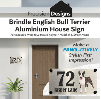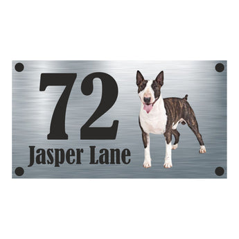 Dog Collection - Brindle English Bull Terrier Aluminium House Sign - Personalised
