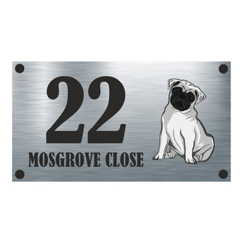 Dog Collection - Pug Aluminium House Sign - Personalised