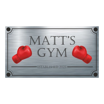 Bring a stylish touch to your gym with this FUN - Boxing Gloves Gym Sign Plaque! With its 11cm x 20cm brushed silver aluminium finish, this unique sign is both durable and eye-catching. Pre-drilled holes and all fixings included, making it suited for both outdoor and indoor use - the perfect way to add a personalised touch to your fitness space!