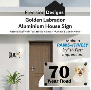 Dog Collection - Golden Labrador Aluminium House Sign - Personalised