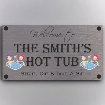 FUN - Hot Tub Aluminium Personalised Plaque - With Any Name ( 11cm x 20cm )