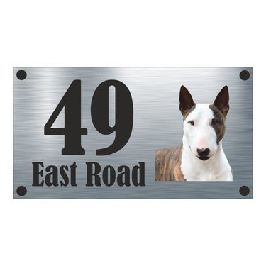 Dog Collection - English Bull Terrier Brindle (HEAD ONLY) Aluminium House Sign - Personalised