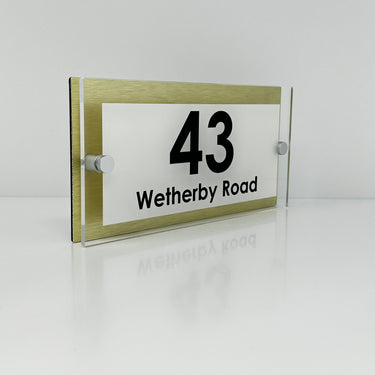 The Wetherby Modern House Sign with Perspex Acrylic Front, Gold Rear Panel and Satin Silver Stand Off Fixings ( Size - 25cm x 12cm )