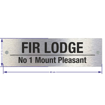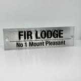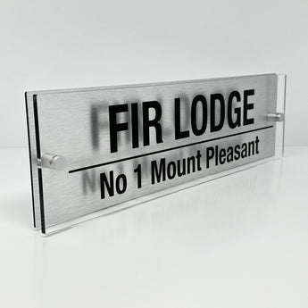 The Fir Lodge Modern House Sign with Perspex Acrylic Front, Silver Rear Panel and Satin Silver Stand Off Fixings ( Size - 42cm x 12cm )