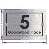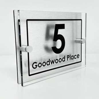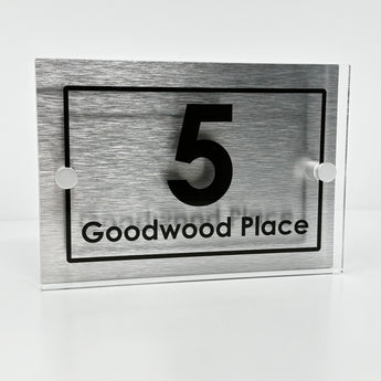 The Goodwood Modern House Sign with Perspex Acrylic Front, Silver Rear Panel and Satin Silver Stand Off Fixings ( Size - 20cm x 14cm )