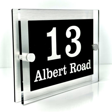 The Albert Modern House Sign with Perspex Acrylic Front, Silver Rear Panel and Satin Silver Stand Off Fixings ( Size - 20cm x 14cm )