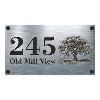 Create a chic and timeless look with this vintage tree aluminium house sign. Our personalised signs are beautifully crafted with durable, top-grade materials! Plus, they're packaged with all the fixings and black screw cap covers. Get ready to be amazed as you admire its 11 cm x 20 cm dimensions!