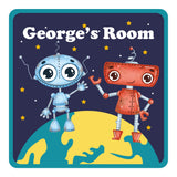Personalised Robot Aliens On Top Of The World Kids Bedroom Door Sign - Unique Gift