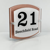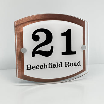 The Beechfield Modern House Sign with Perspex Acrylic Front, Copper Rear Panel and Satin Silver Stand Off Fixings ( Size - 20cm x 18cm - WHITE BACKGROUND BLACK TEXT )