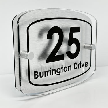 The Burrington Modern House Sign with Perspex Acrylic Front, Silver Rear Panel and Satin Silver Stand Off Fixings ( Size - 20cm x 16cm )
