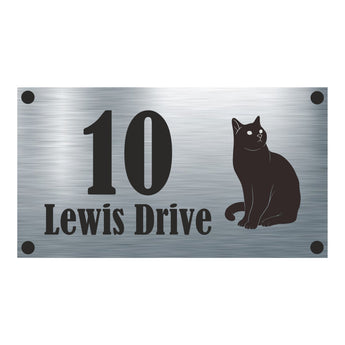 Cat Collection - Black Cat Aluminium House Sign - Personalised