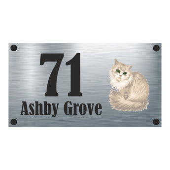 Cat Collection - Fluffy Cat Aluminium House Sign - Personalised