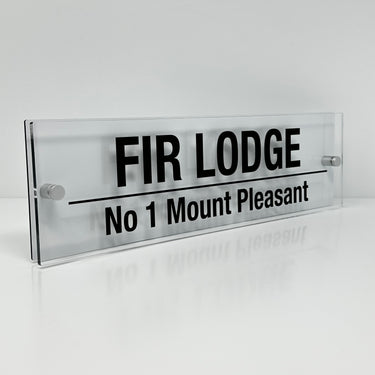 The Fir Lodge Modern House Sign with Perspex Acrylic Front, Black Rear Panel and Satin Silver Stand Off Fixings ( Size - 42cm x 12cm )