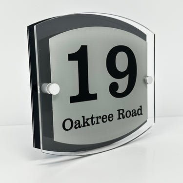 The Oaktree Modern House Sign with Perspex Acrylic Front, Black Rear Panel and Satin Silver Stand Off Fixings ( Size - 20cm x 18cm )