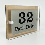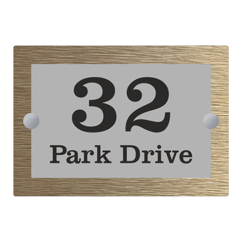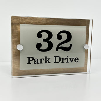 The Park Drive Modern House Sign with Perspex Acrylic Front, Brass Rear Panel and Satin Silver Stand Off Fixings ( Size - 20cm x 14cm )