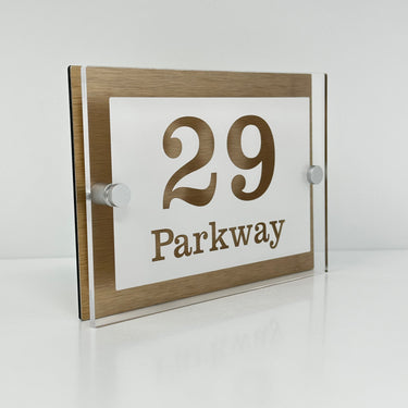 The Parkway Modern House Sign with Perspex Acrylic Front, Brass Rear Panel and Satin Silver Stand Off Fixings ( Size - 20cm x 14cm )