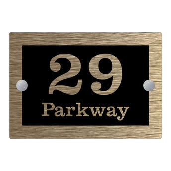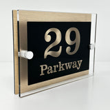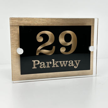 The Parkway Modern House Sign with Perspex Acrylic Front, Brass Rear Panel and Satin Silver Stand Off Fixings ( Size - 20cm x 14cm )