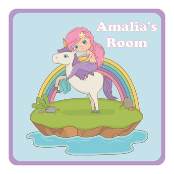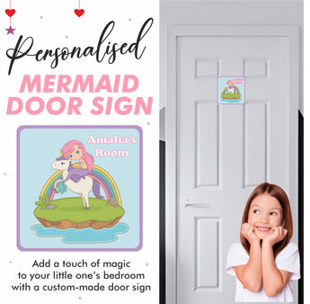 Personalised Mermaid On A Unicorn Kids Bedroom Door Sign - Unique Gift
