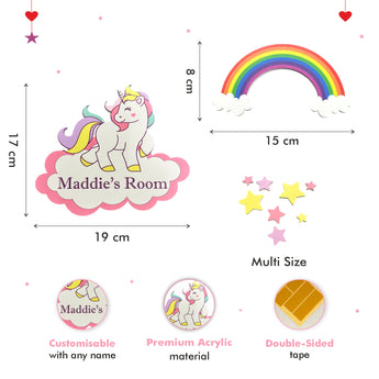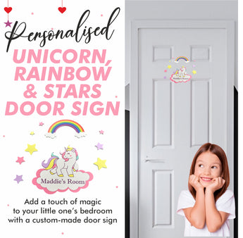 Unicorn, Rainbow and Stars Kids Bedroom Door Sign / Toybox Sign - Unique Gift