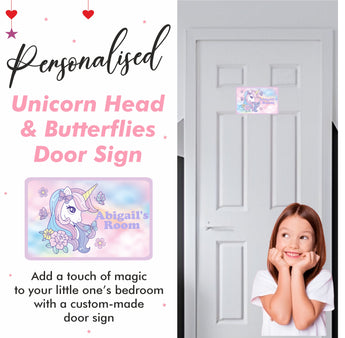 Personalised Unicorn Head & Butterflies Kids Bedroom Door Sign - Unique Gift