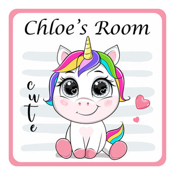 Personalised Cute Big Eyes Unicorn Kids Bedroom Door Sign - Unique Gift