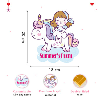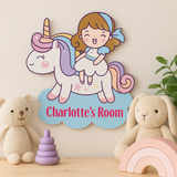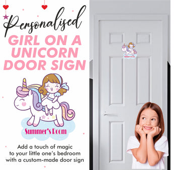Personalised Girl on a Unicorn Kids Bedroom Door Sign - Unique Gift