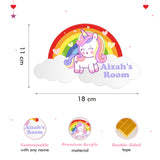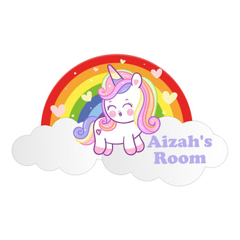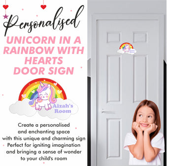 Personalised Unicorn in a Rainbow with Hearts Kids Bedroom Door Sign - Unique Gift