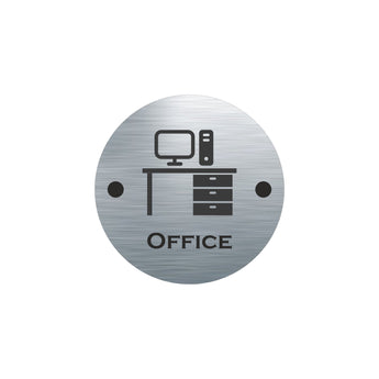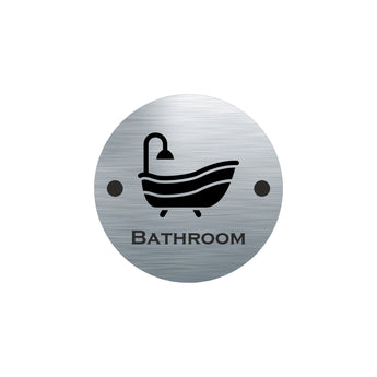 Display your rooms in style with this sleek and durable circle aluminium sign for your home. Crafted from brushed silver aluminium, it includes pre-drilled screw holes and comes with all necessary fixings and black screw cap covers. 10cm Disc Made from brushed silver aluminium Includes fitting kit for easy installation.