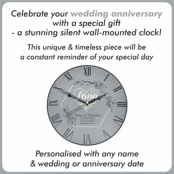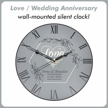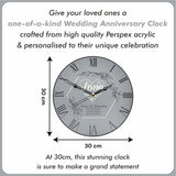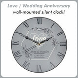 Love / Wedding Anniversary Clock - Bespoke Personalised Wedding Day / Anniversary Gift (30cm Silent Clock)