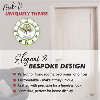 5th Wood Wedding Anniversary Clock - Bespoke Personalised Anniversary Gift (30cm Silent Clock)