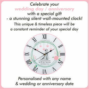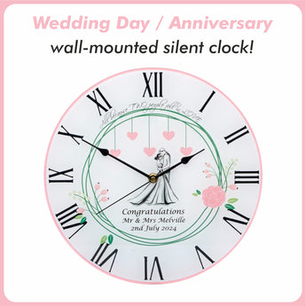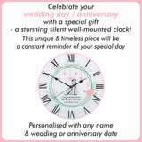Wedding Day Clock - Bespoke Personalised Wedding Day / Anniversary Gift (30cm Silent Clock)