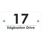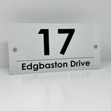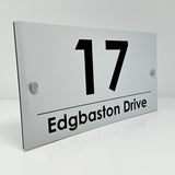 The Edgbaston Modern House Sign with a White Panel and Satin Silver Stand Off Fixings ( Size - 35cm x 18cm )