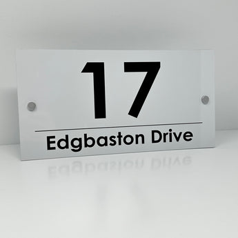 The Edgbaston Modern House Sign - White 35cm x 18cm