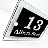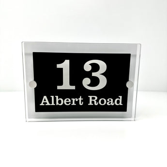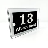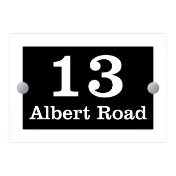 The Albert Modern House Sign with Perspex Acrylic Front, White Rear Panel and Satin Silver Stand Off Fixings ( Size - 20cm x 14cm )