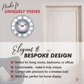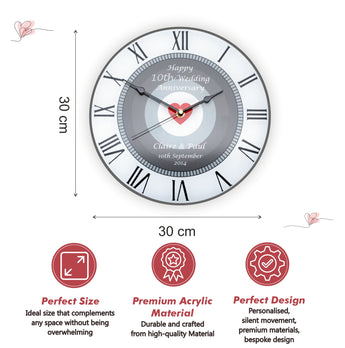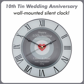 10th Tin Wedding Anniversary Clock - Bespoke Personalised Anniversary Gift (30cm Silent Clock)