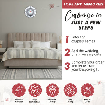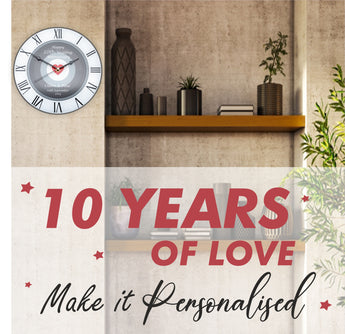Celebrate your 10th wedding anniversary with this unique and personalised clock. Each clock is custom-made from high-quality Perspex acrylic and features a 30cm circle with Roman numerals. Easily mountable, this bespoke wall clock includes a wall hanging kit and 1x AA battery. The perfect, unique and thoughtful gift for your special day.