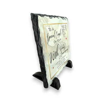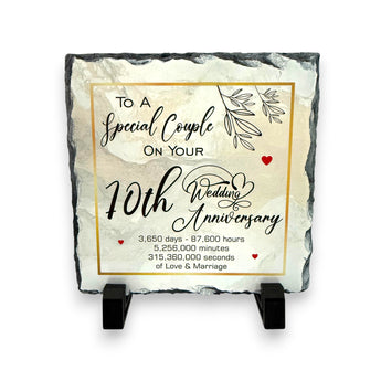 10th Wedding Anniversary Slate for a Special Couple – Handcrafted Natural Slate Plaque with Stand – Romantic Keepsake – 15cm x 15cm