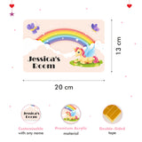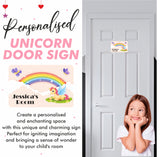 Personalised Unicorn and Rainbow Door Sign – Name Plaque for Kids – 20 x 13 cm – Children's Bedroom Decor with Double-Sided Tape