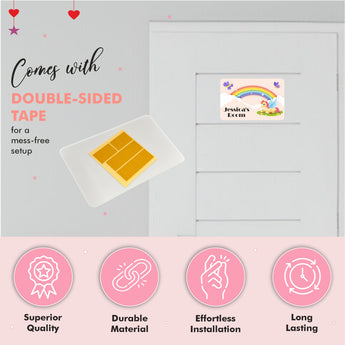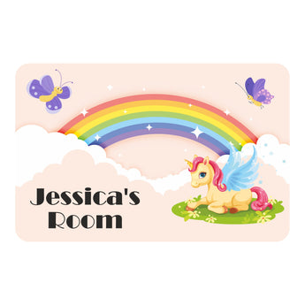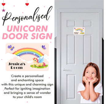 🦄 Personalised Unicorn Door Sign – Turn your child’s room into a magical haven with our Unicorn door sign! This delightful 20 x 13 cm plaque features a charming unicorn with glittering wings, a rainbow bursting with color, and fluttering butterflies — all set against soft pastel clouds.